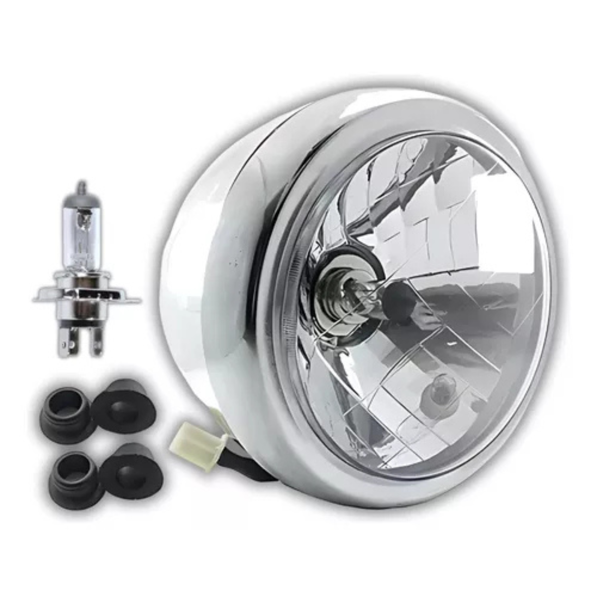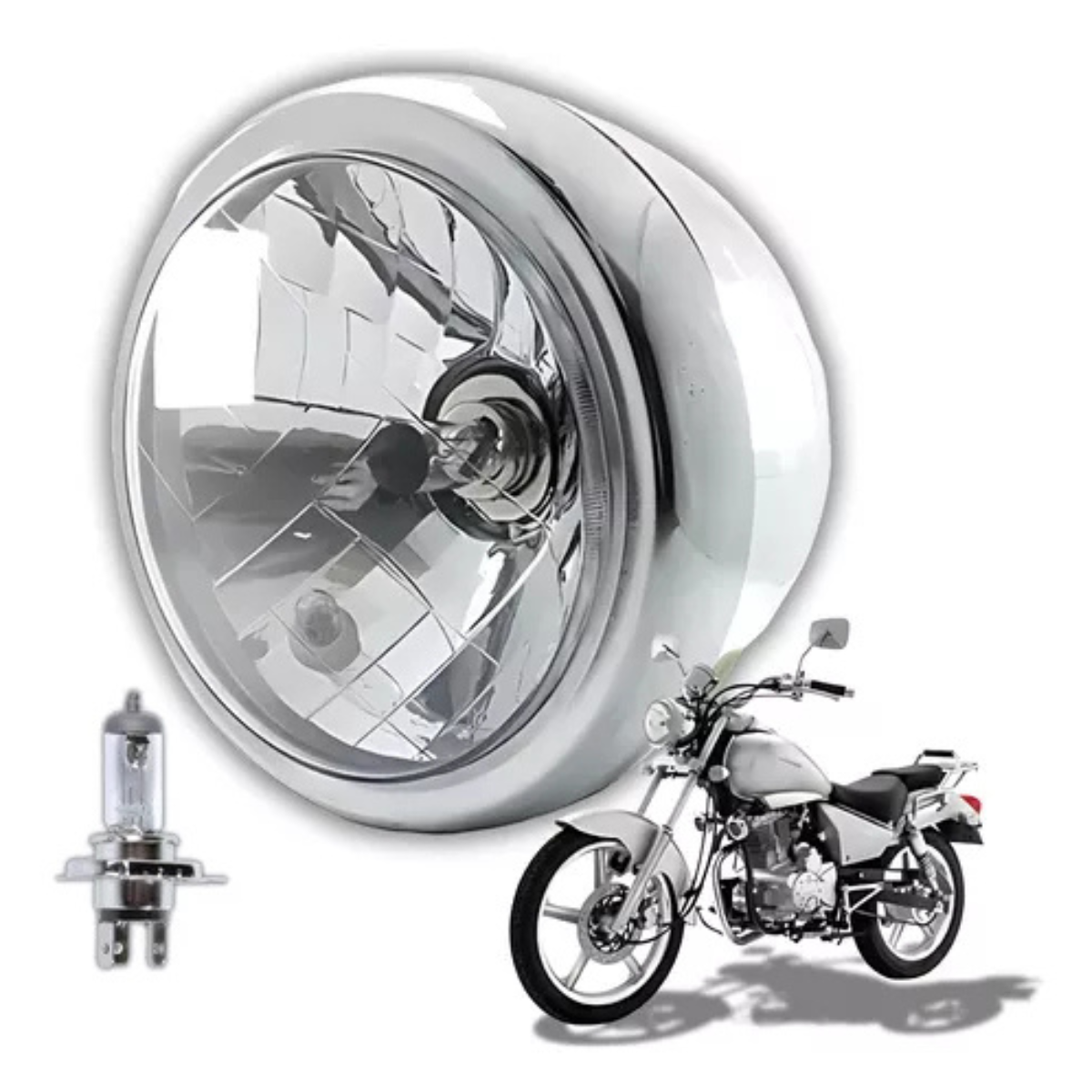 Substitua o farol da sua Dafra Kansas 150 com qualidade, segurança e estilo. Este farol completo é compatível com os modelos fabricados entre 2008 e 2015, oferecendo o mesmo padrão de encaixe e funcionalidade da peça original, com acabamento cromado que valoriza o visual clássico da motocicleta.