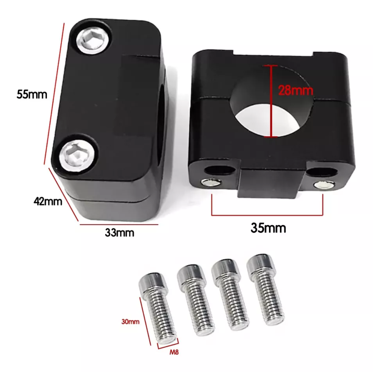 Acompanha par de adaptadores, proporcionando instalação universal e segura em diversas motocicletas de diferentes marcas e modelos.